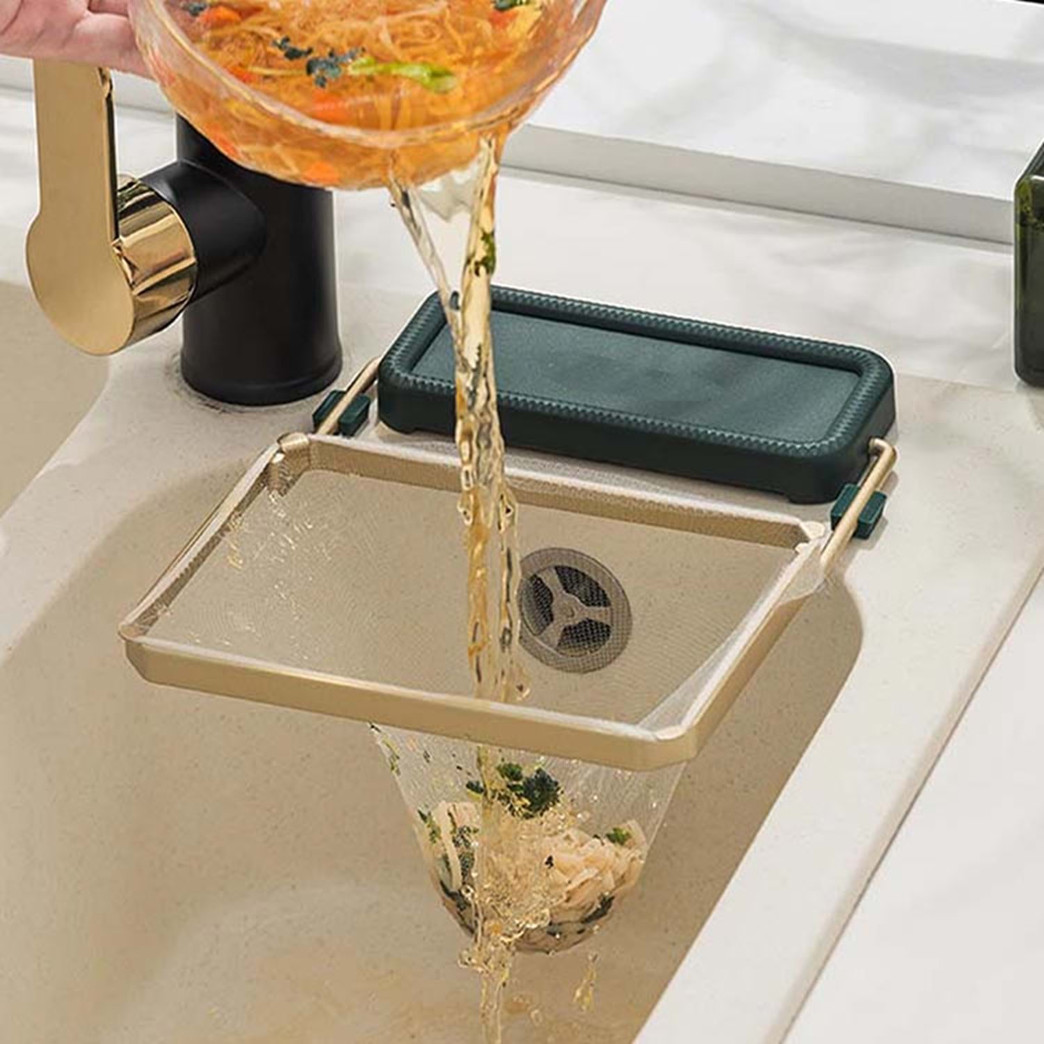 • Geniş yüzeyli süzgeç tasarımı: Sıvıyı süzer, katı atıkları toplar