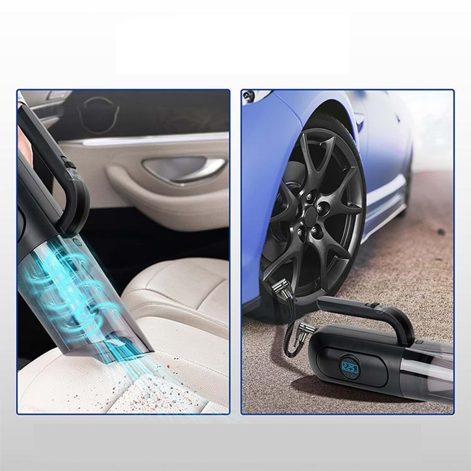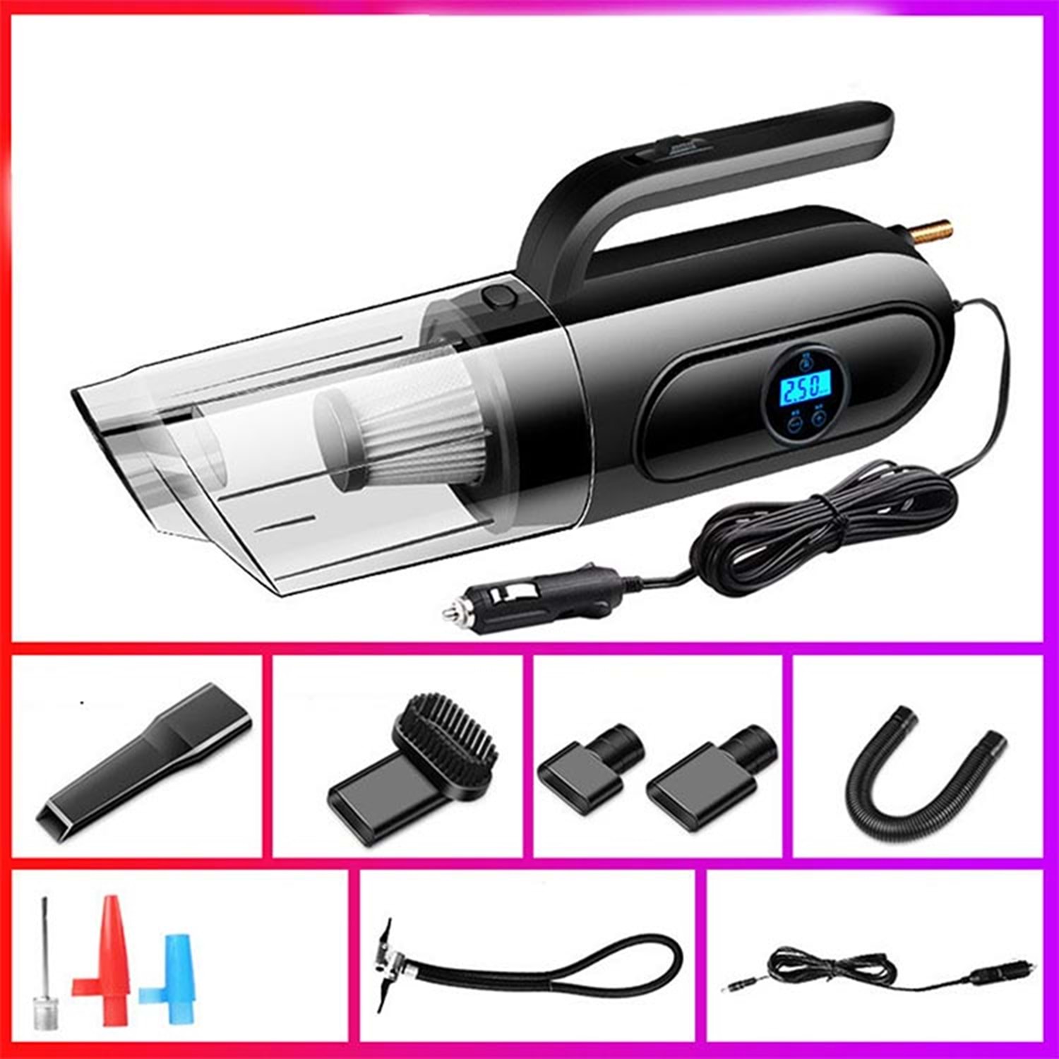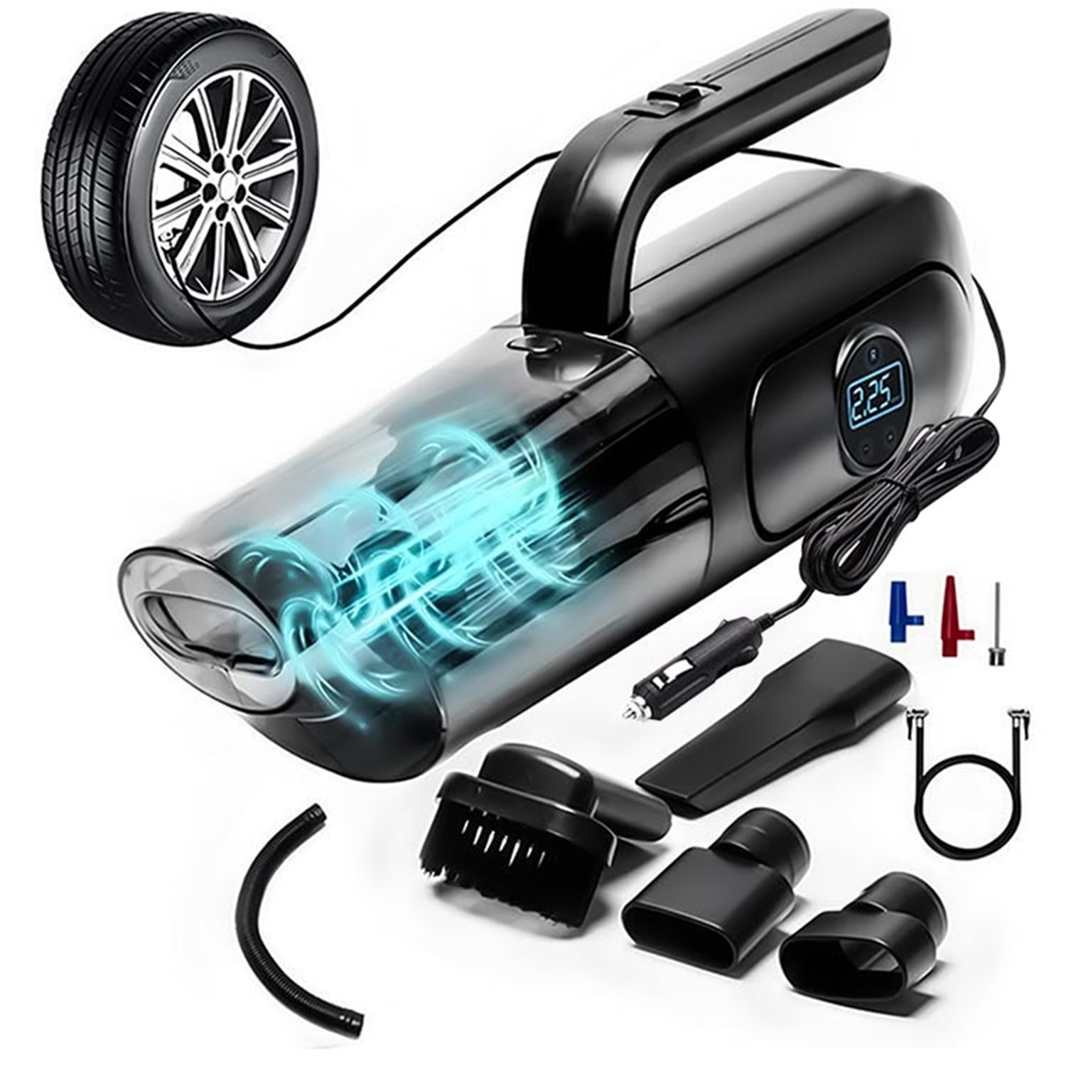 Elektrik Elektronik ve Aydınlatma 4'ü 1 arada Dijital Göstergeli Güçlü Emişli Elektrikli El Süpürgesi ve Lastik Şişirme Hava Kompresörü Özellikleri