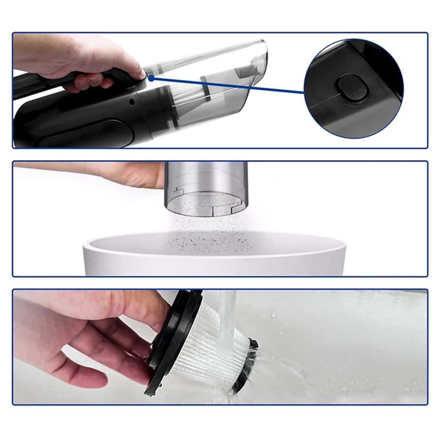 Özellik: Taşınabilir, Hafif, Kolay Temizlenebilir, Islak ve Kuru Temizleme, Yıkanabilir Filtre, Siklon Teknolojisi
