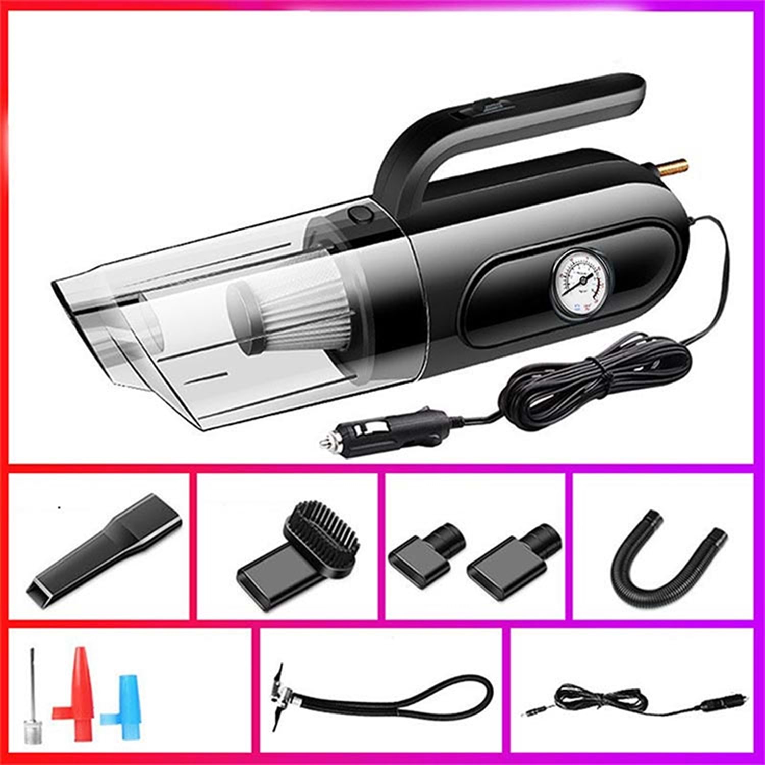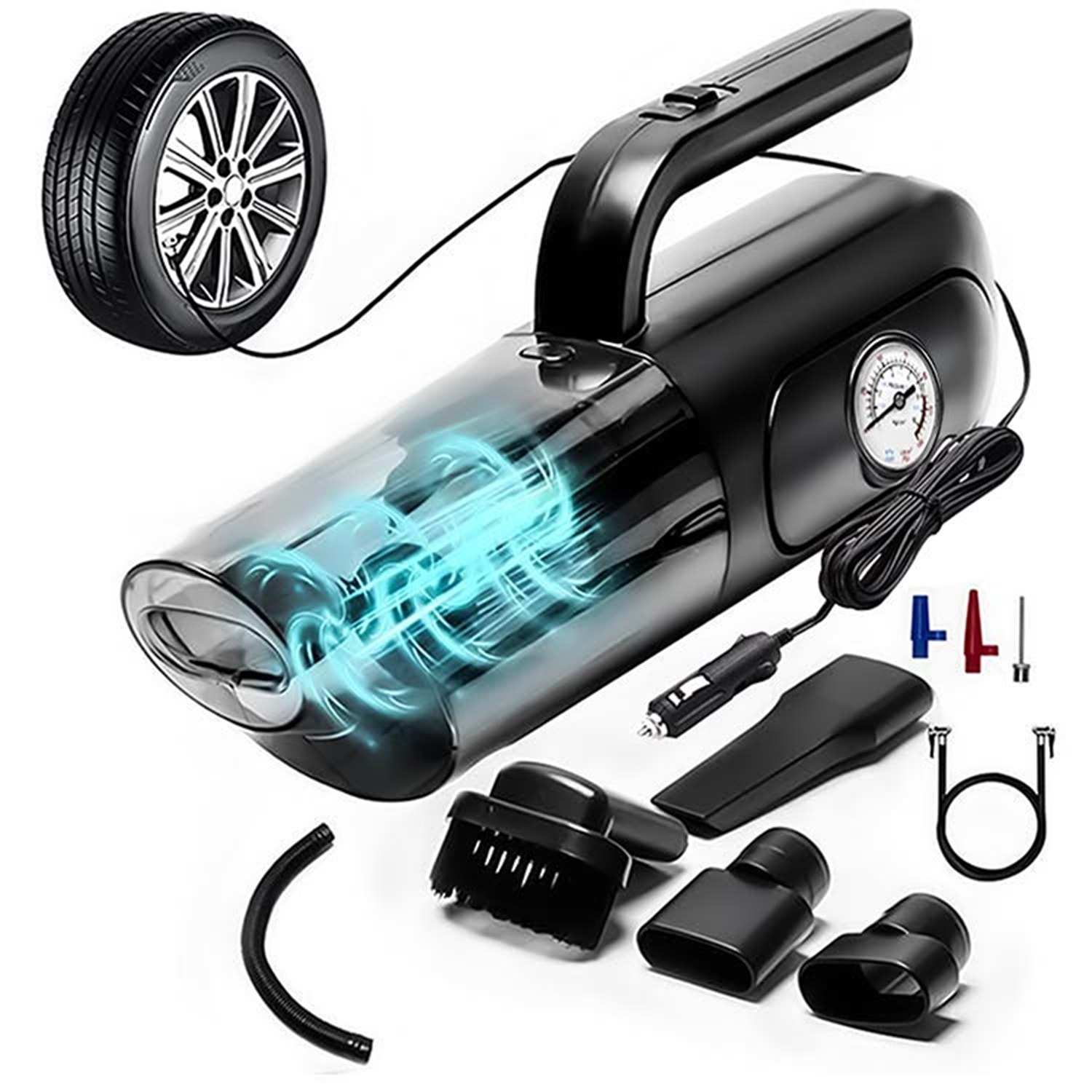 Elektrik Elektronik ve Aydınlatma 4'ü 1 arada Saat Göstergeli Güçlü Emişli Elektrikli El Süpürgesi ve Lastik Şişirme Hava Kompresörü Özellikleri